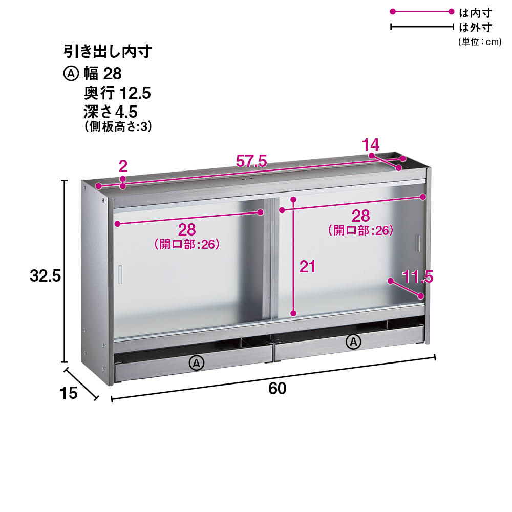 ステンレスカウンター上収納 引き出し付き 幅60奥行15cm 調味料入れ スパイスラック 保存容器 キャニスター オイル H91763