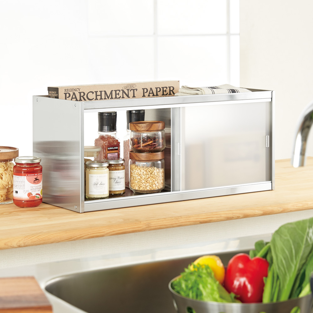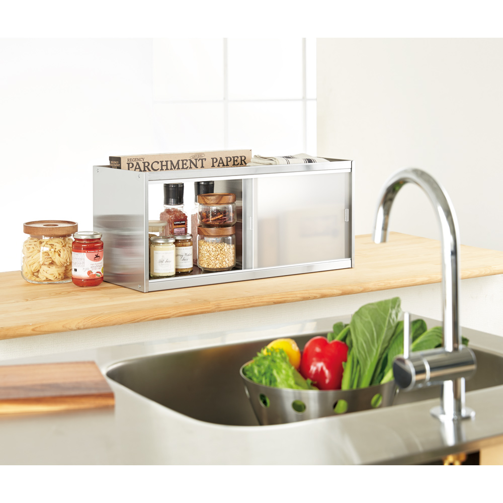 ステンレス製カウンター上収納 幅60奥行24cm キッチンカウンター上収納 キッチン収納 H91764