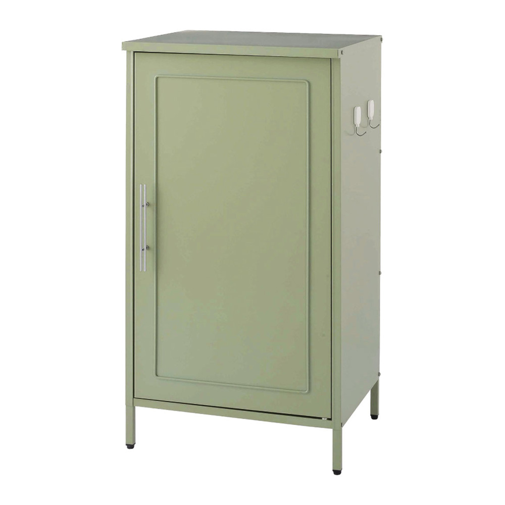 (ア)セージグリーン スリムタイプ。わずかなスペースも収納に活用できます。棚板の手前には柄の長いツールが収納可能。
