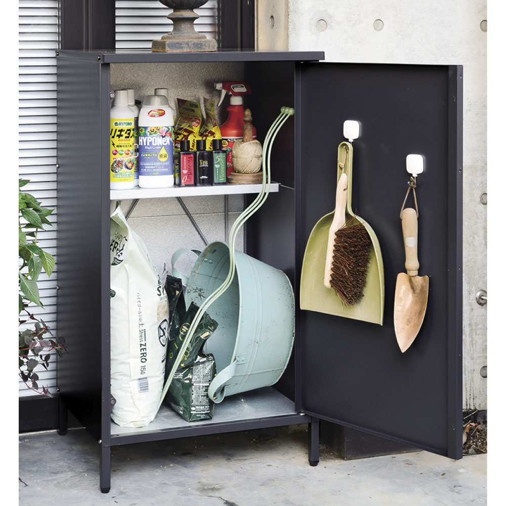 ・作業に必要なツールのほか、土や肥料、日用品のストックまでも収納できる、頼れる収納力も自慢です。・棚板は可動式で収納物に合わせて調整できます。下部にはポリタンクなども収納可能。