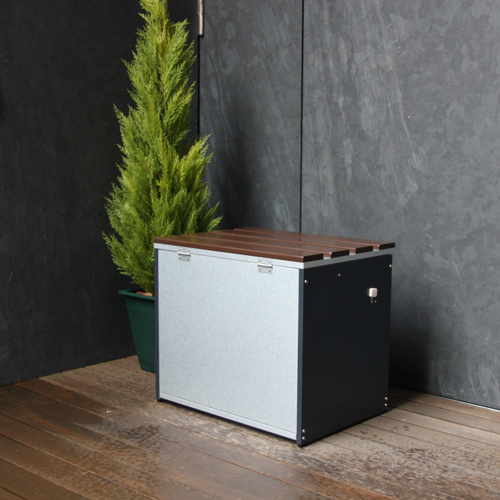 ウッドデッキ上や軒下などに、あるとうれしい簡易収納ベンチです。