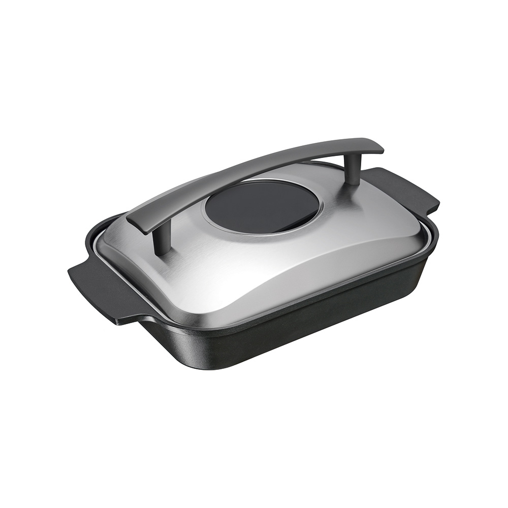 本体の底面の厚さは約1.1cm。しっかりと熱を蓄えるので、丸ごとの魚も分厚いお肉もふっくら、やわらかく焼き上げます。