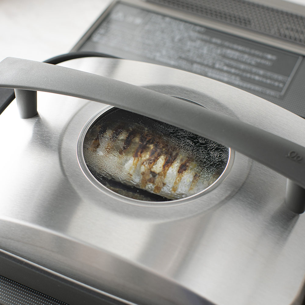 「洗うのが面倒な魚焼きグリルを使わずにおいしく魚を焼きたい!」という方に。フッ素プレートに配合された「炭」の遠赤外線パワーと高温の蒸気のダブルの要素で、短時間でふっくらパリパリに焼き上げます。