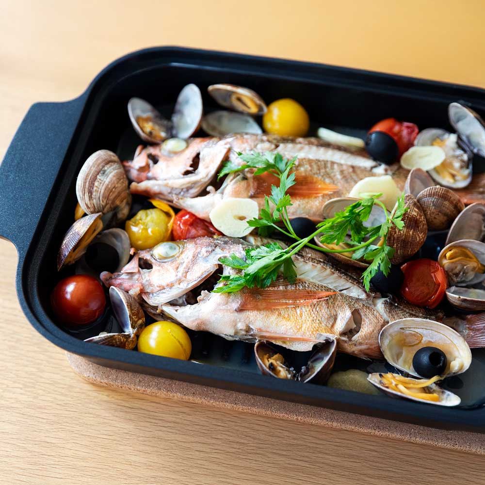 アクアパッツァなどオシャレな料理も!そのまま食卓へ。