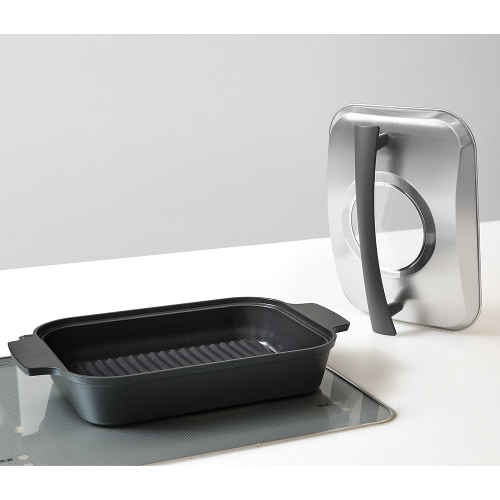 本体の底面の厚さは約1.1cm。しっかりと熱を蓄えるので、丸ごとの魚も分厚いお肉もふっくら、やわらかく焼き上げます。