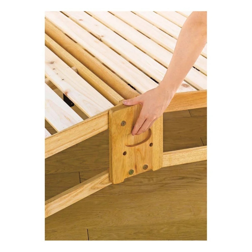 すのこは国産ひのきの天然木を使用しています寝具をのせる床板には通気性の高いひのきの天然木を使用しています。フレームは堅くて強度のあるゴム天然木を使用しています。
