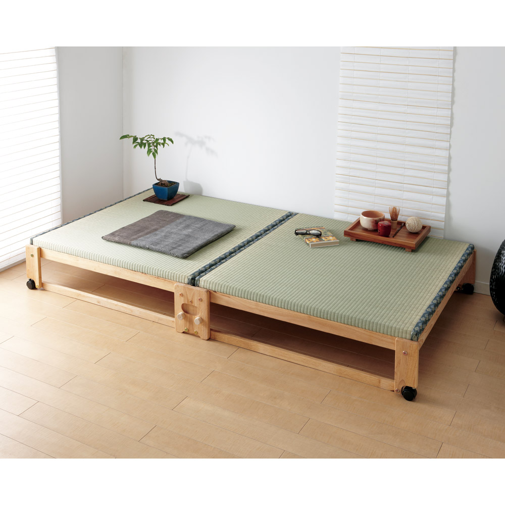 ◎い草の床板の裏は、ひのきのすのこなので通気性に優れています。◎ベッド時は、木枠で本体を支えるので安定感があり、
