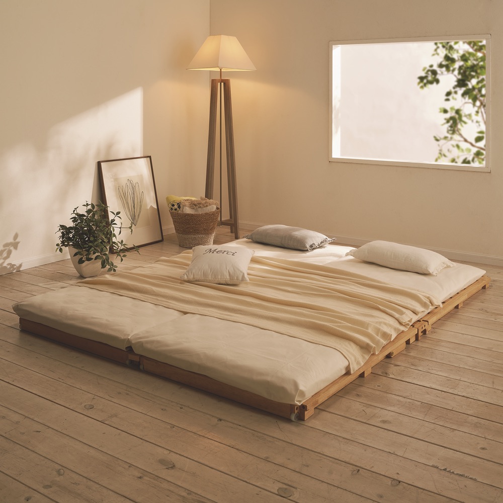 お布団と床の間にすのこを敷いて、快適な睡眠を。布団を載せたまま部屋干しも!