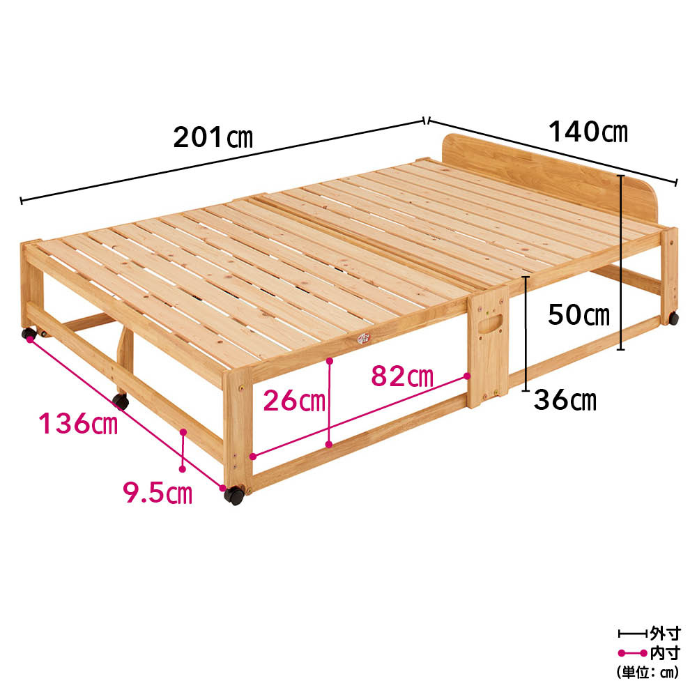 ■本体…ゴム天然木(オイルステン仕上げ)、すのこ…ひのき天然木(国産材)
