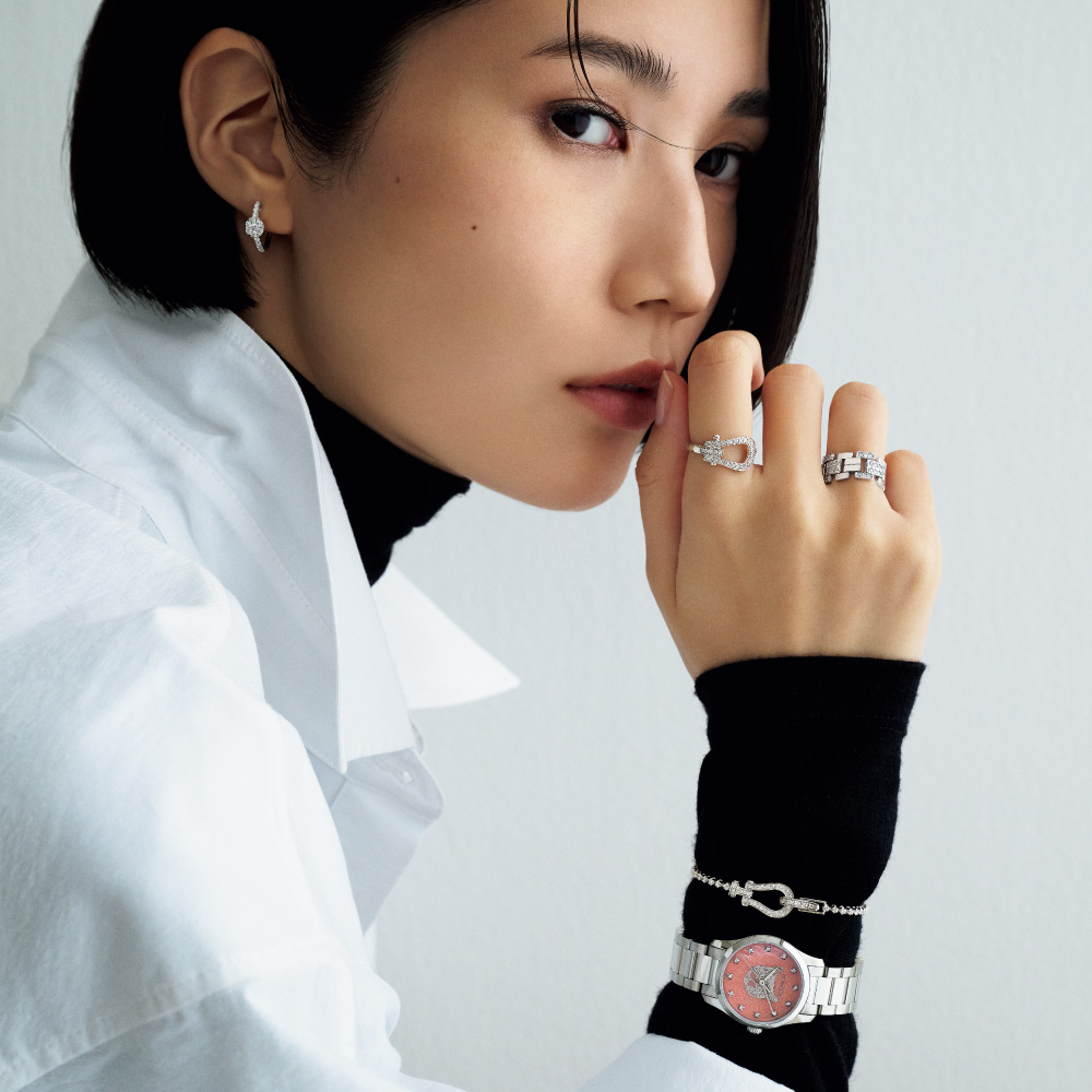 コーディネート例 /ラグジュアリーキュートなウォッチをスパイスにダイヤジュエリーを重ねて
