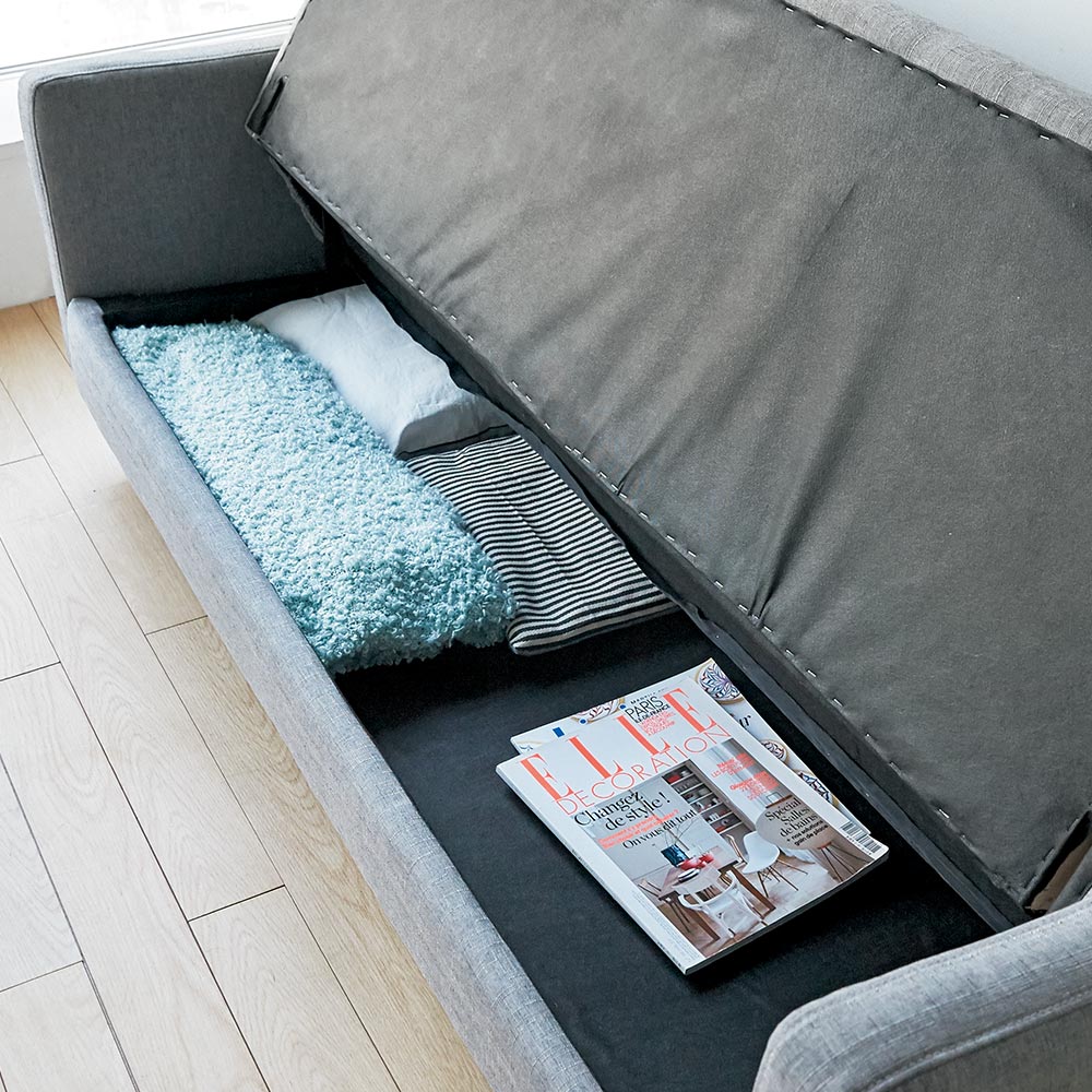 座面下のスペースには、カバー類や衣類などが収納できます。