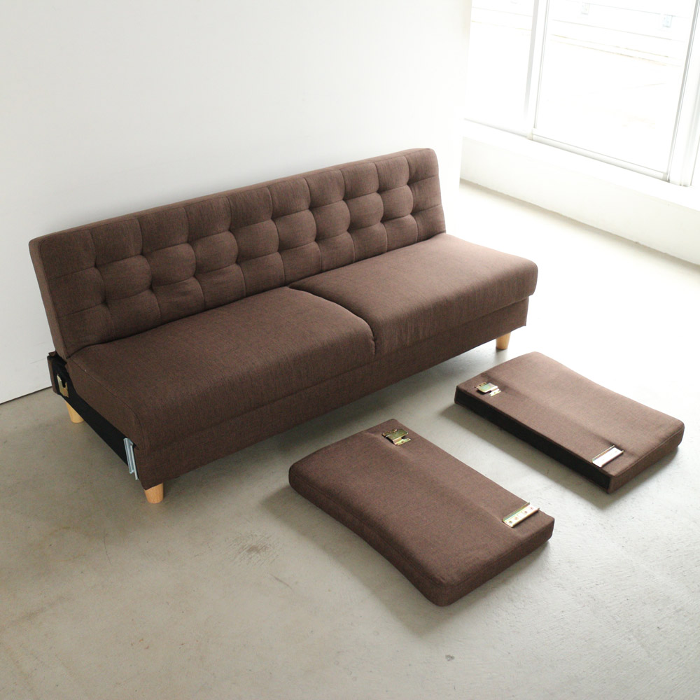 背もたれだけが倒れるタイプのソファベッドには、背面にたっぷりの空間が必要ですが・・・このソファベッドは、前側から座面を持ち上げるだけで簡単にベッドに変換できます。