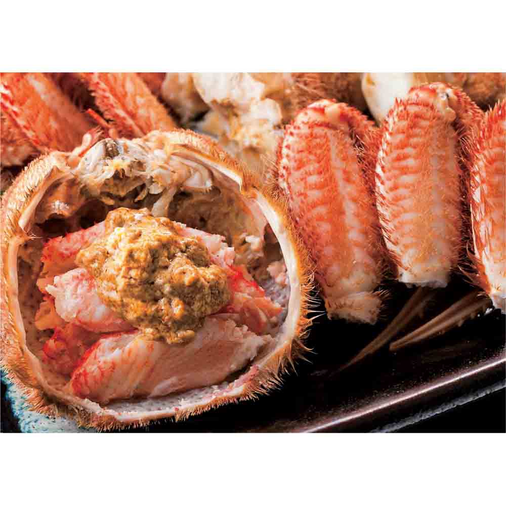 サイズ別に時間を調整し、丁寧に蒸し上げた毛蟹は、マイナス50℃の液体で超急速冷凍(リキッドフリージング)。完全に凍結するまでわずか20分程度しかかからないため、細胞が破壊されず、解凍時に旨み成分が流出する心配もありません。北の海の旨みが凝縮したビッグサイズの活蒸し毛蟹をぜひご賞味ください。