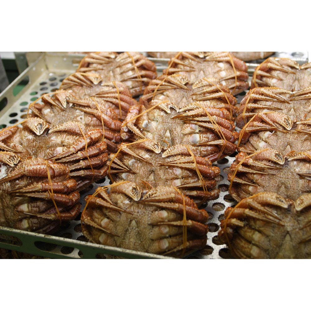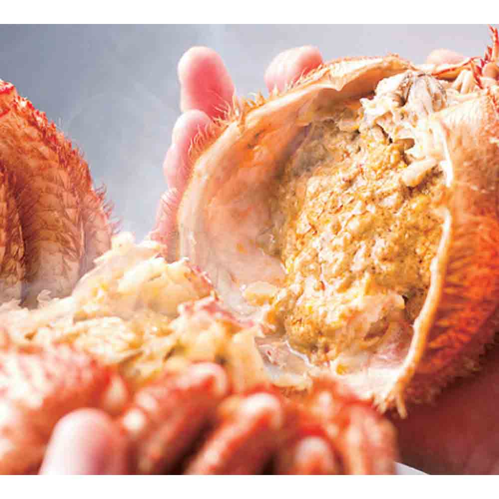 日高昆布でも有名な北海道の豊かな海で、貝や小魚を食べて育った毛蟹です。中でも厳冬期に獲れる毛蟹は冷たい海水で身が締まり、濃厚な味わいを楽しめます。今回の商品は、旨み成分を逃さず、しっとりとした食感を大切にするために、水揚げされたばかりの活きた毛蟹をスチームでじっくり蒸し上げる方法で加工。「茹で蟹」とは一味も二味も違う美味しさを実現しました。