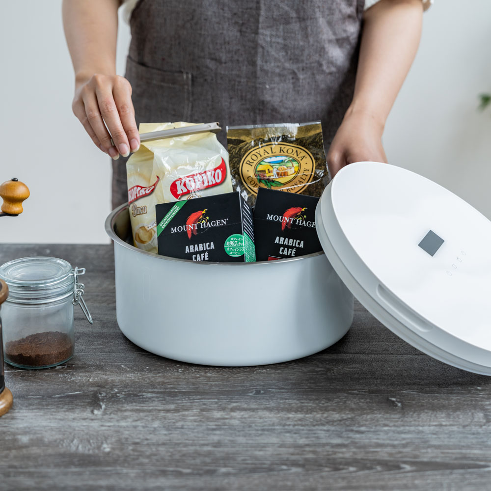 ポテトチップスなど湿気でおいしさが半減してしまうお菓子の保存はこの容器におまかせ!食べきれなかった分も、あとでおいしく食べられます。他にも、風味を大切にしたい乾物やコーヒー豆、脂質を多く含み酸化しやすいペットフードの保存にぴったりです。