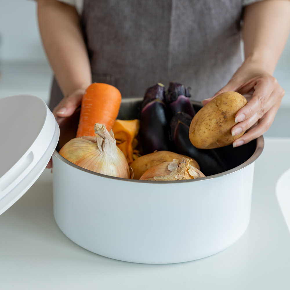 常温保存可能な野菜を保存すれば、詰め込みすぎてパンパンになりがちな冷蔵庫もすっきり