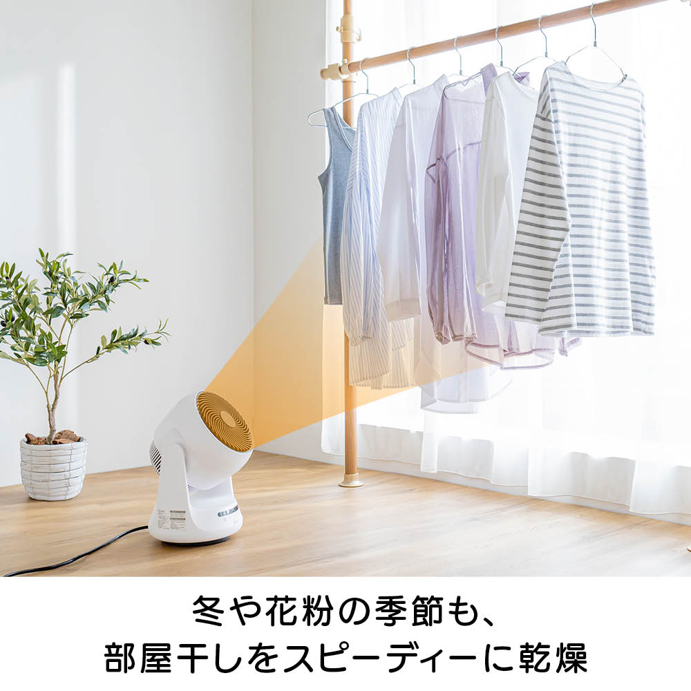 温風・送風の2Way機能。冬場は衣類乾燥やスポット暖房にも