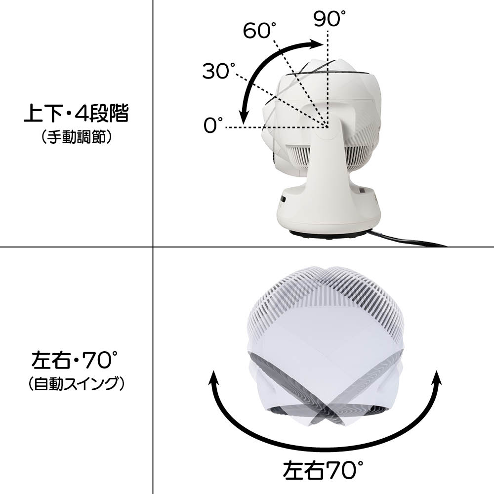 ■首振角度:上下0°/30°/60°/90°(手動4段階)左右70°(自動)