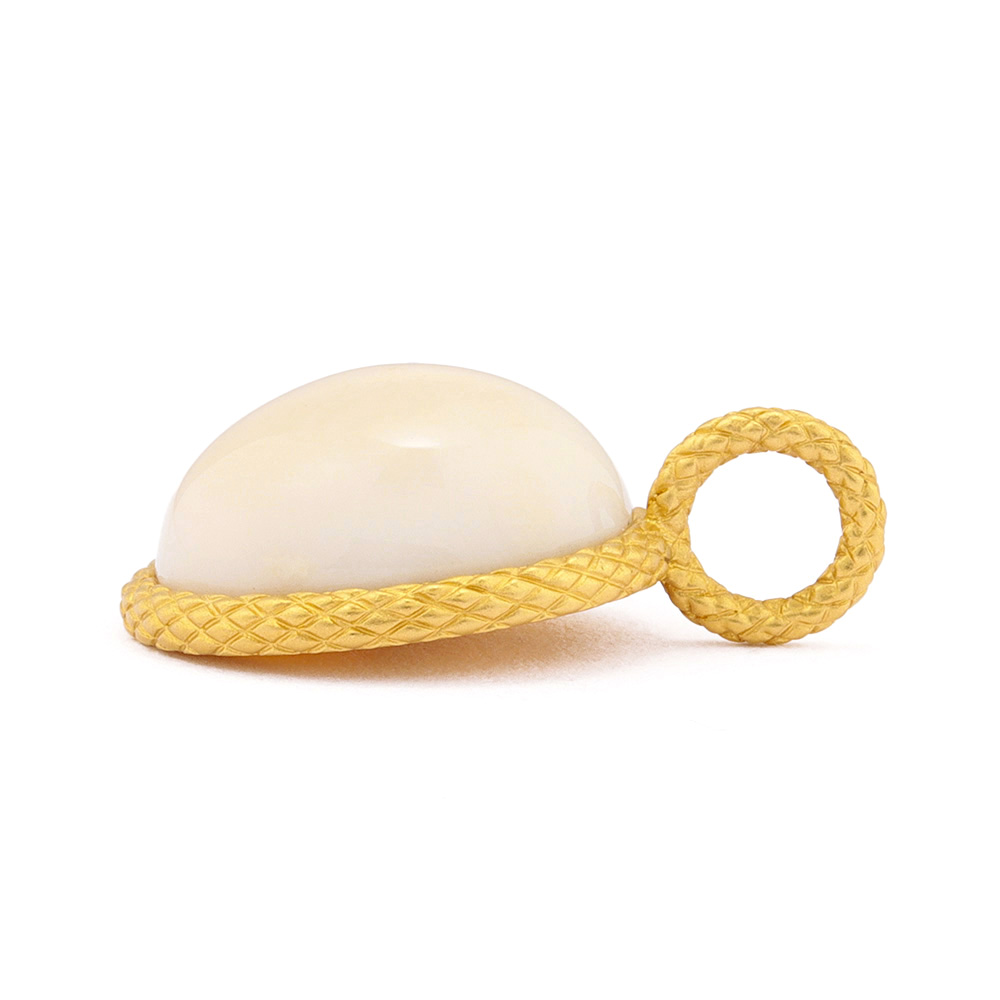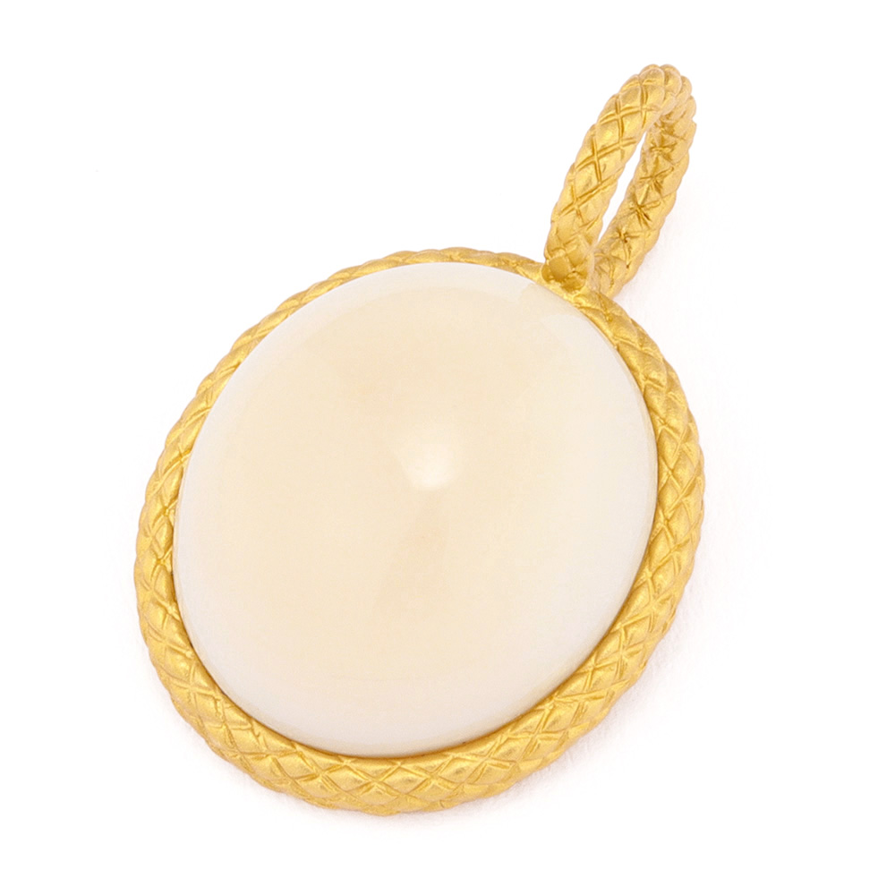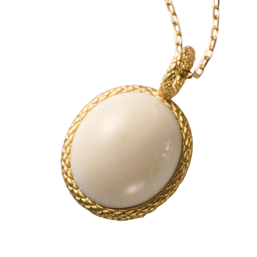 温かみのあるミルキートーンが肌を美しく見せてくれる珊瑚は、マットなゴールドカラーと合わせればシックに華やぎます。大倉珊瑚店 K18 白珊瑚リング(商品番号:J07902)とお揃いのヴィンテージの白珊瑚のヘッド。