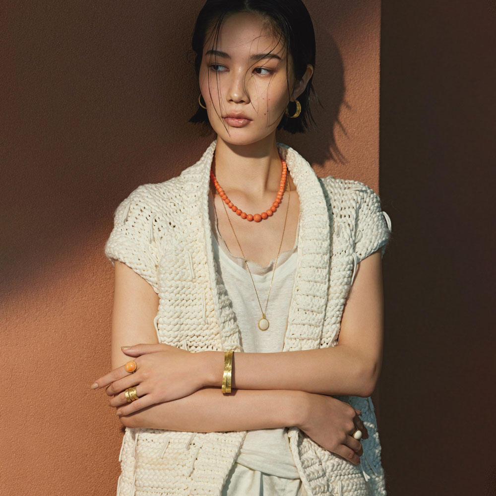 感性に導かれるように纏うカラーストーンジュエリーは、アイデンティティを瑞々しく表現してくれるアイテムです。デザイン×配色で遊んだコーディネート例と共にご注目を。