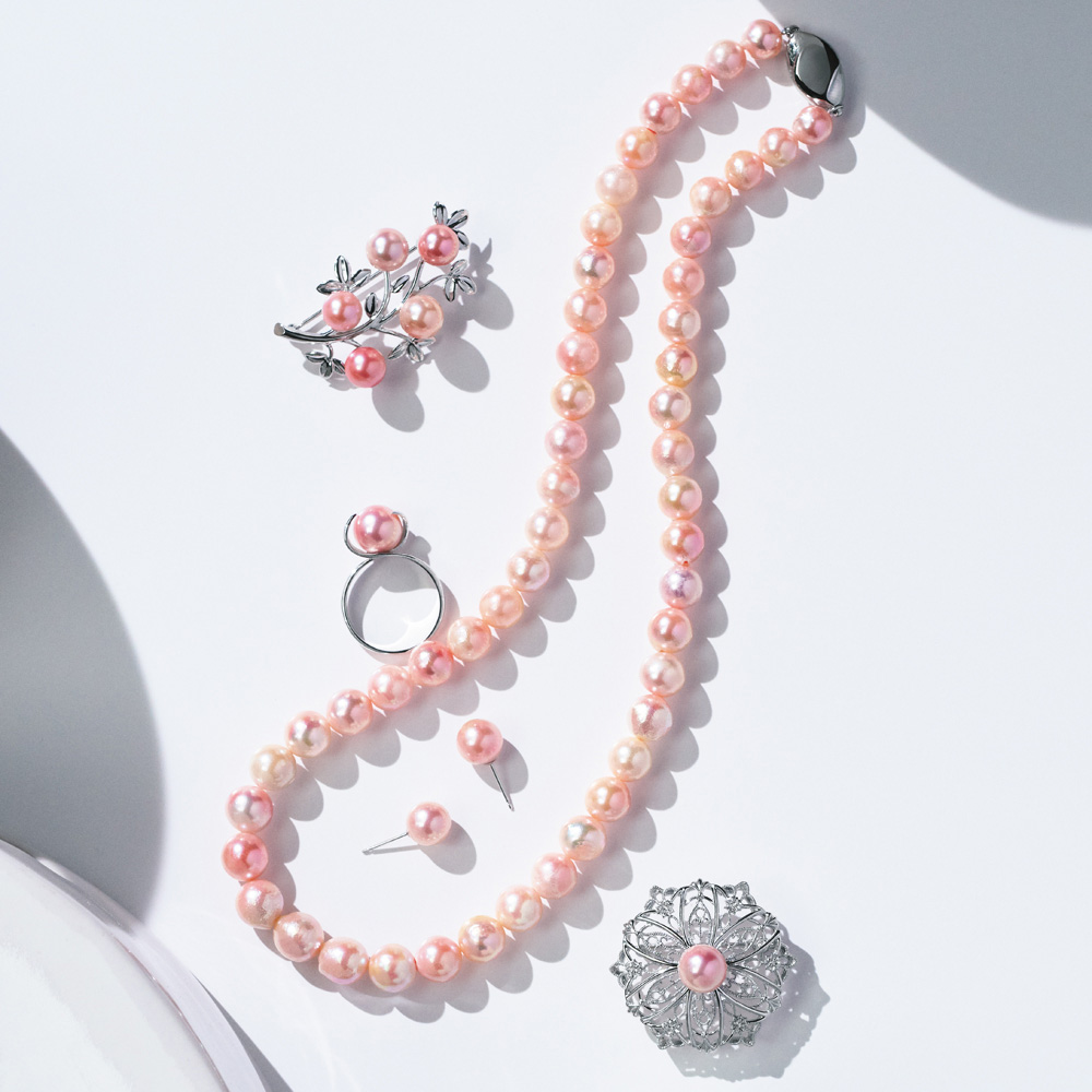 コラーロパールは、1883年創業の老舗「大倉珊瑚店」が、真珠の専門家たちの協力のもと、20年以上もの歳月をかけて完成した宝飾和珠の傑作です。通常は真珠の核に貝殻を使いますが、こちらは贅沢にも上質な珊瑚を使用。神秘的に艶を湛えた柔らかなピンクカラーは、自然界と人智の結びつきを物語ります。デコルテに華色を映すネックレス。