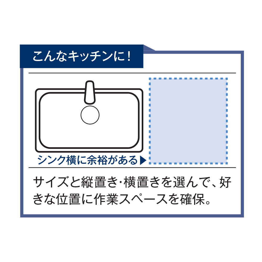 横に設置できて手前のスペースで調理が可能な横置きスリムサイズ。