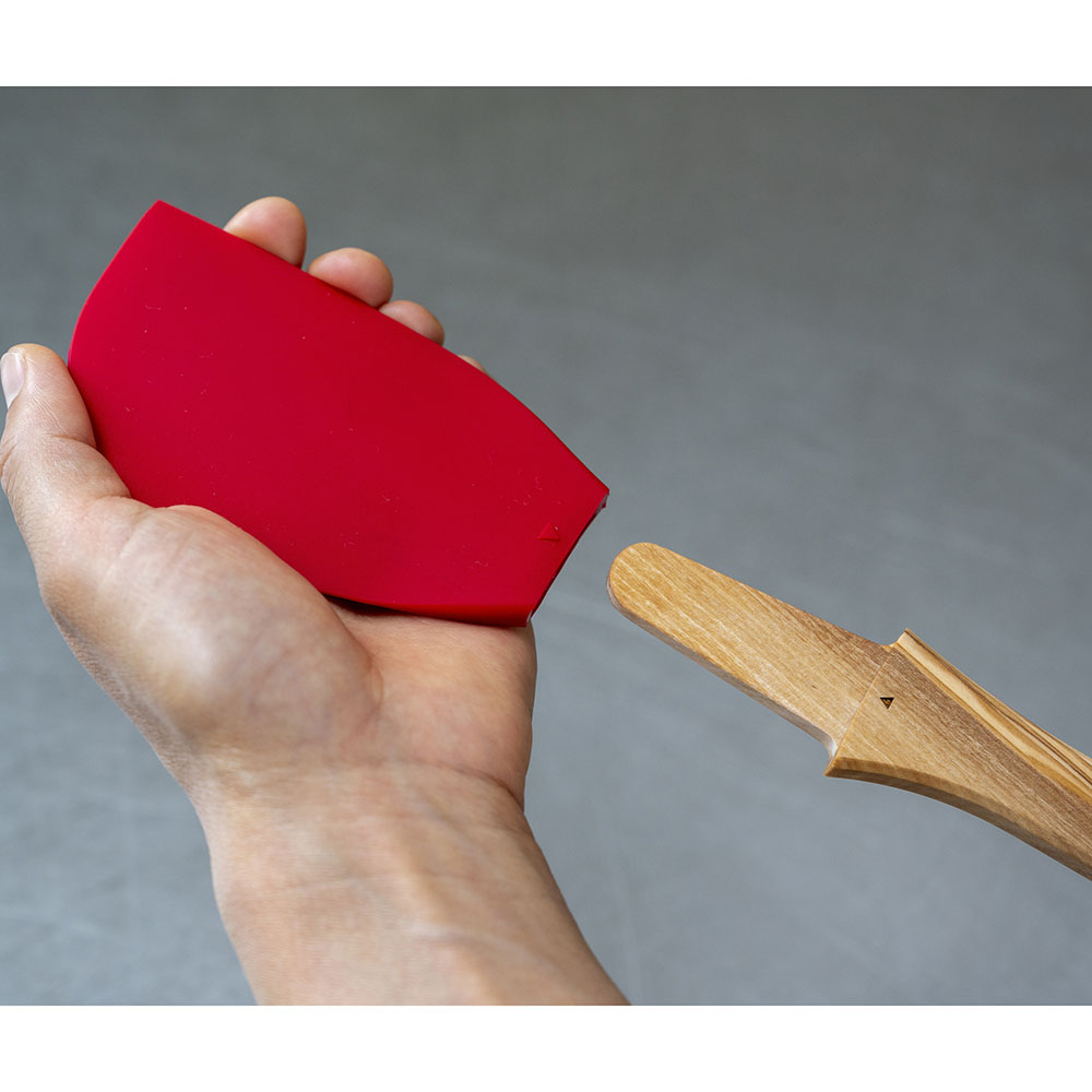 ヘラ部分は外してスッキリ洗えます。着脱を繰り返してもしっかり固定できるように差し込み部分に突起をつけています。定番の白と、チャームポイントの赤