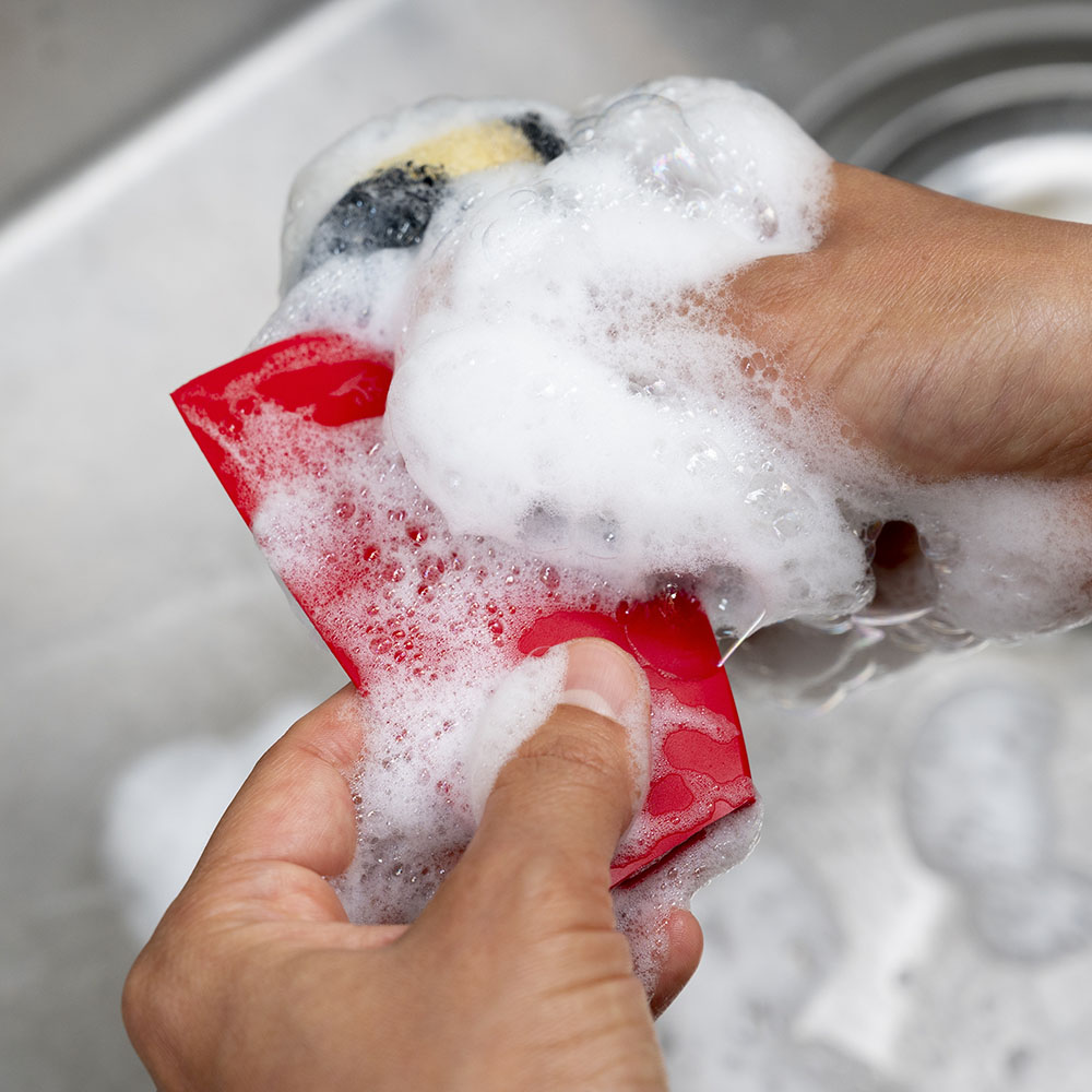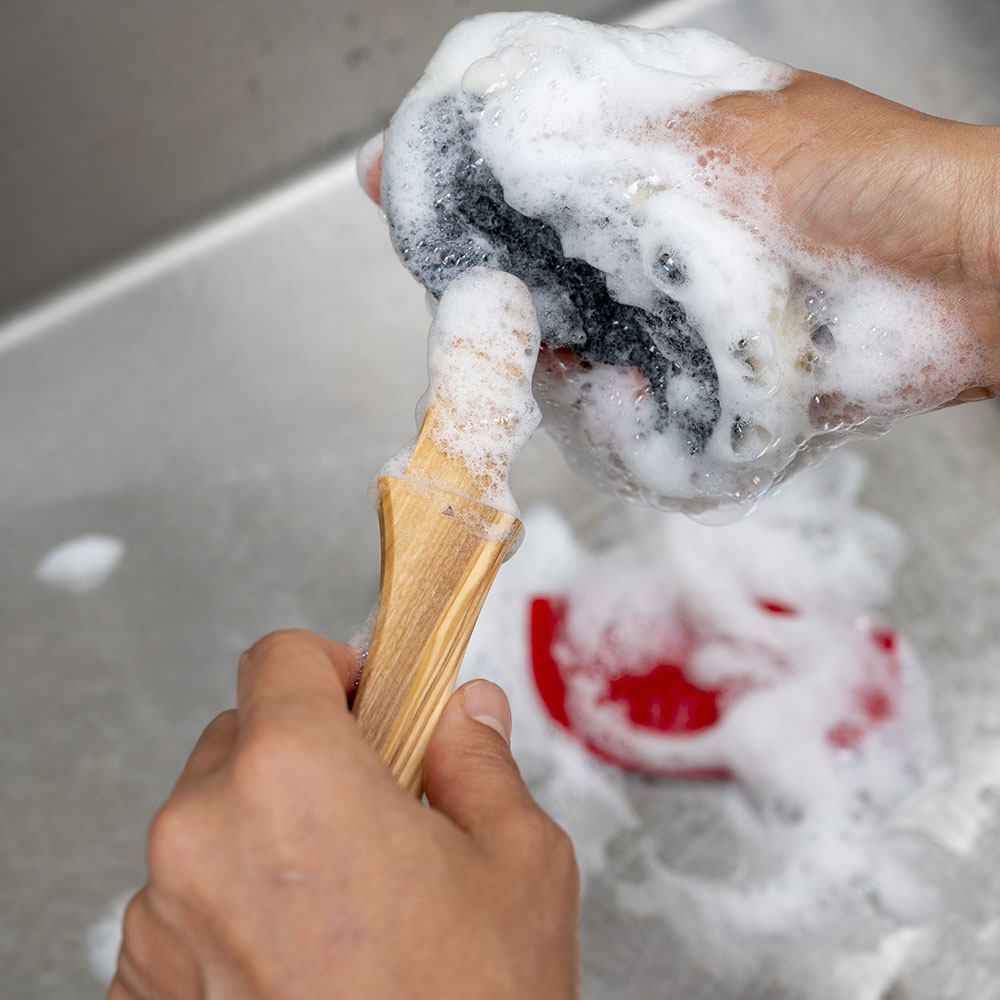 「最終的には硬さを決めるのにとても時間がかかりました」と振り返る有元さんは様々な硬さのサンプルや、試作を使っていく中で「ちょっと厚くするだけですごく硬くなってしまい、薄くするとコシがなくなってしまう」ことから、調整を繰り返し、硬すぎず、柔らかすぎない、気持ちいいコシを実現しました。洗いやすさもポイント