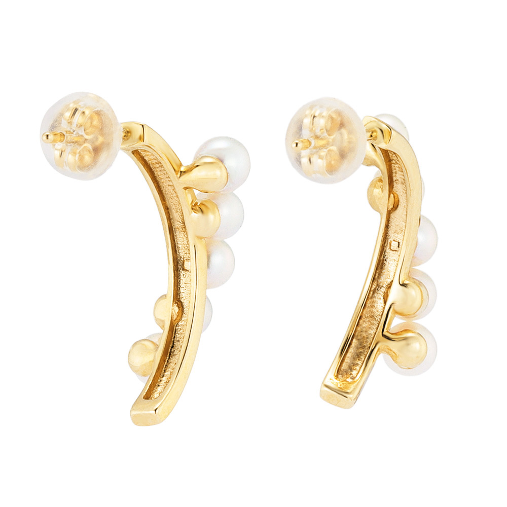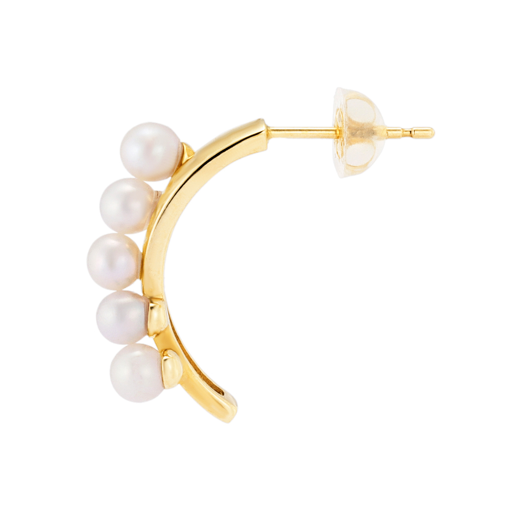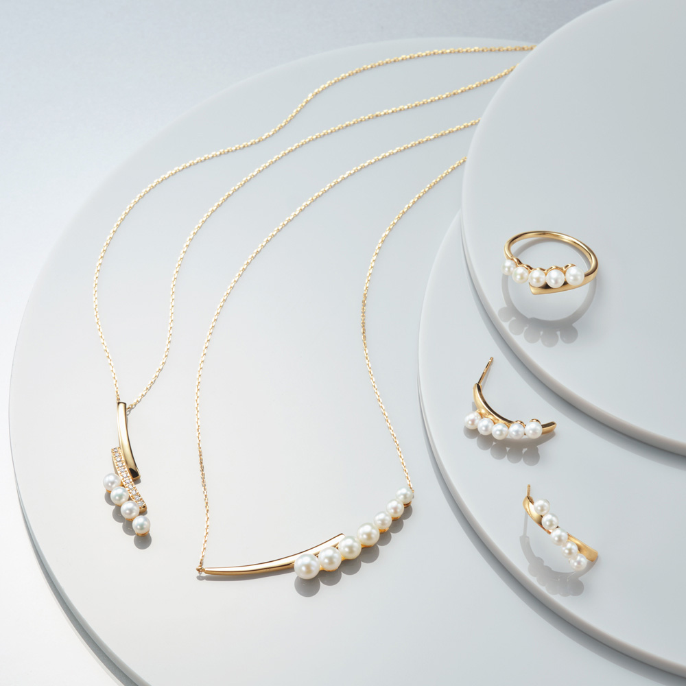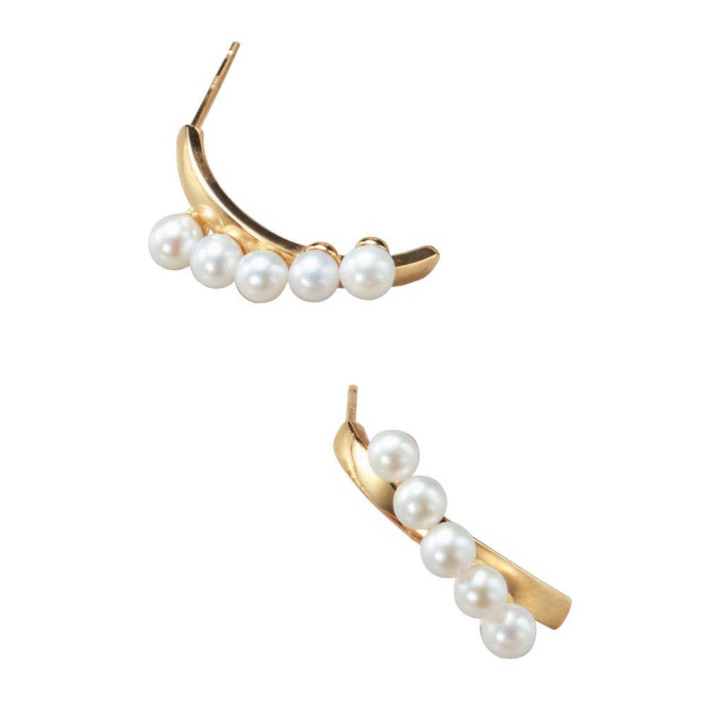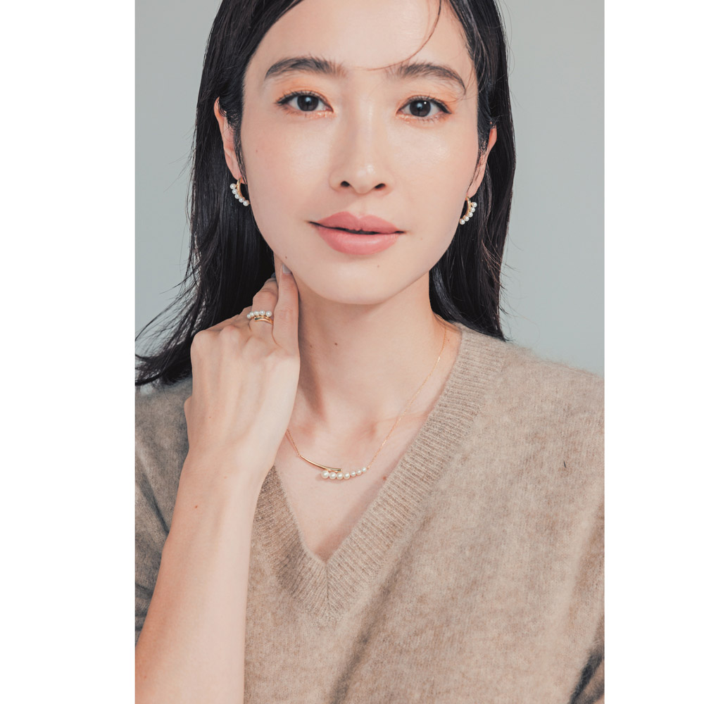 パールと地金が交差したデザインが、エレガントかつ洗練さを醸します。素材を活かしたシンプルさでどんなスタイルにも◎。