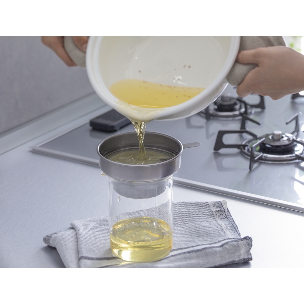 揚げ物油の汚れや臭いが気になる方にぴったり。ろ過した油は頻繁に使う揚げ物だけでなく、炒め物にも安心して再利用できるほどクリアです。無駄なく賢く油を使いたい方におすすめのアイテムです。