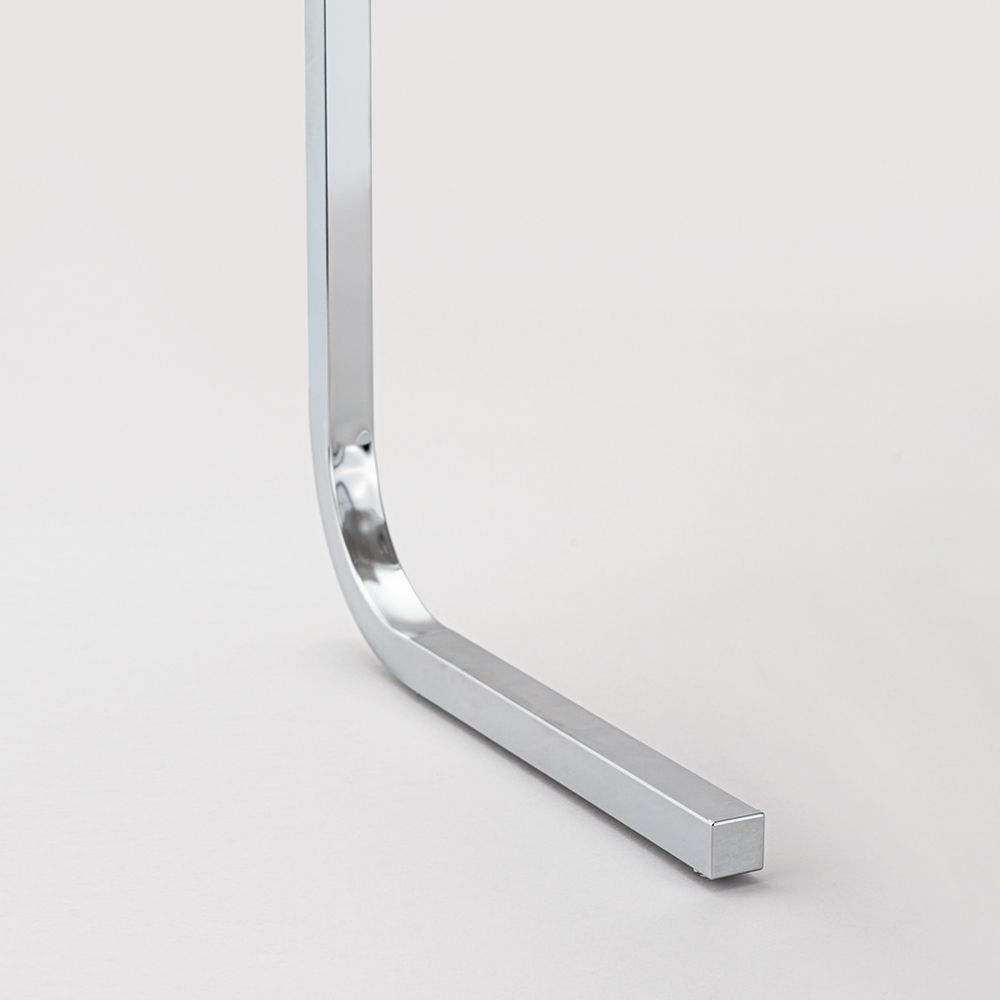 耐荷重約10kgの太くて頑丈なL字の脚。先端までもシルバーで見た目も美しい。