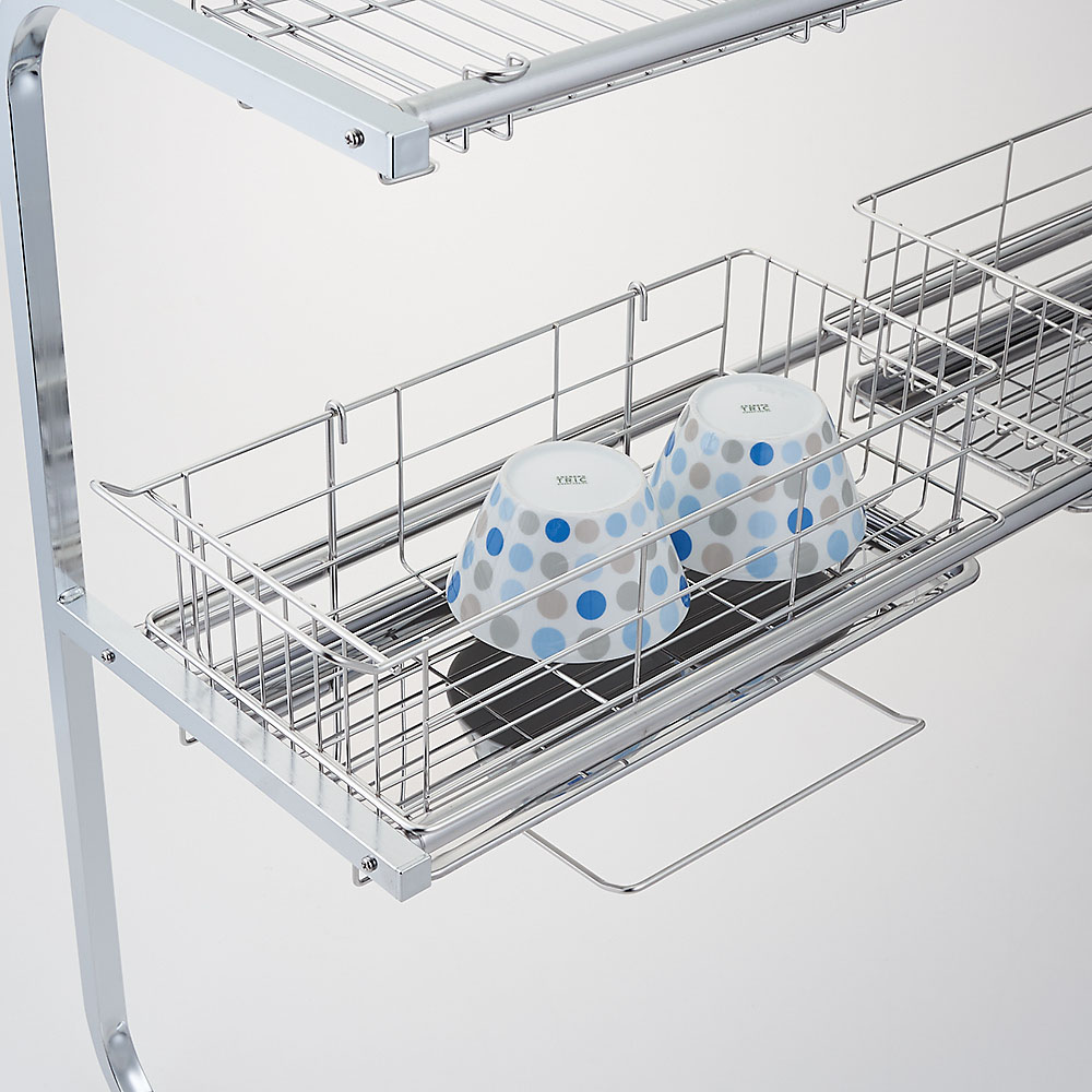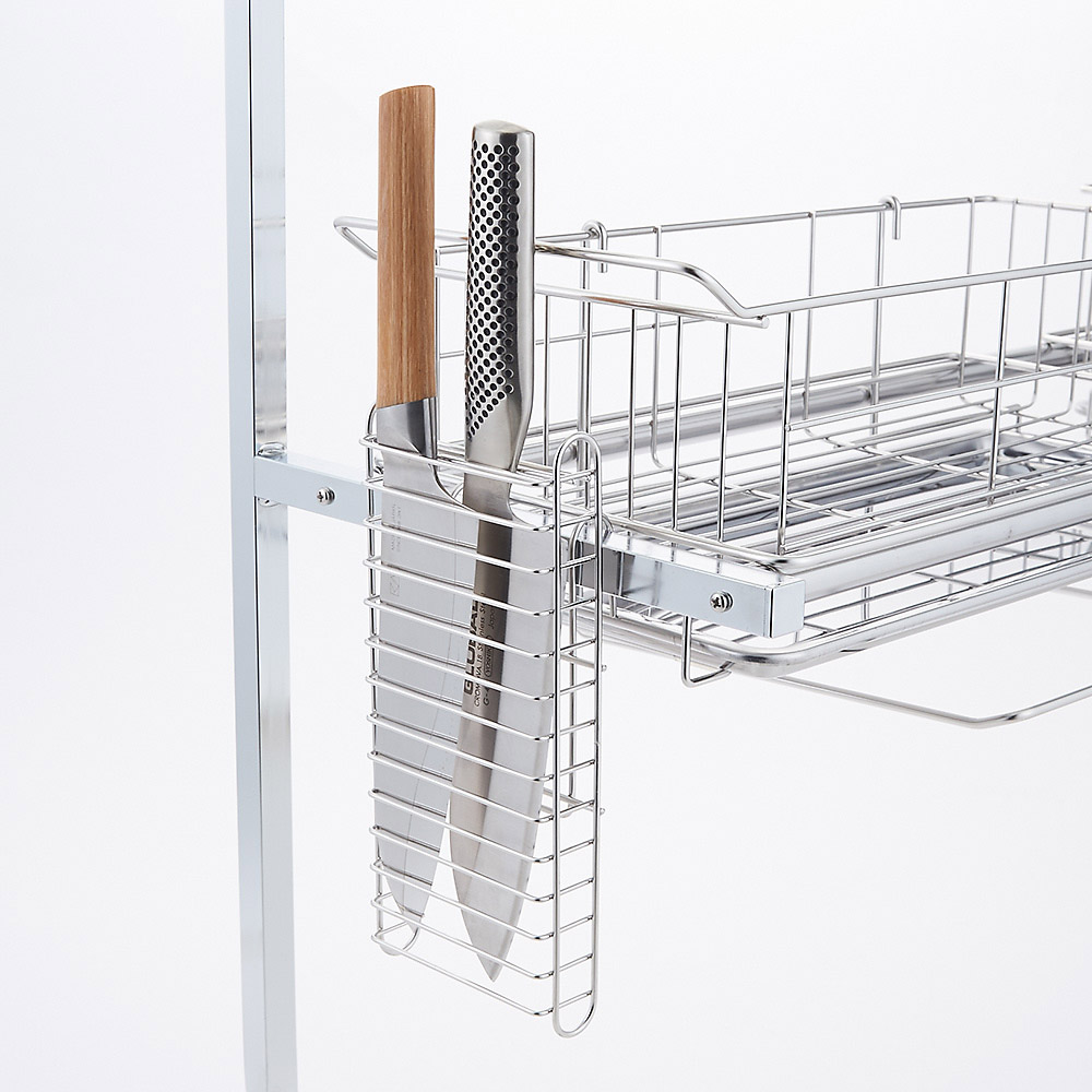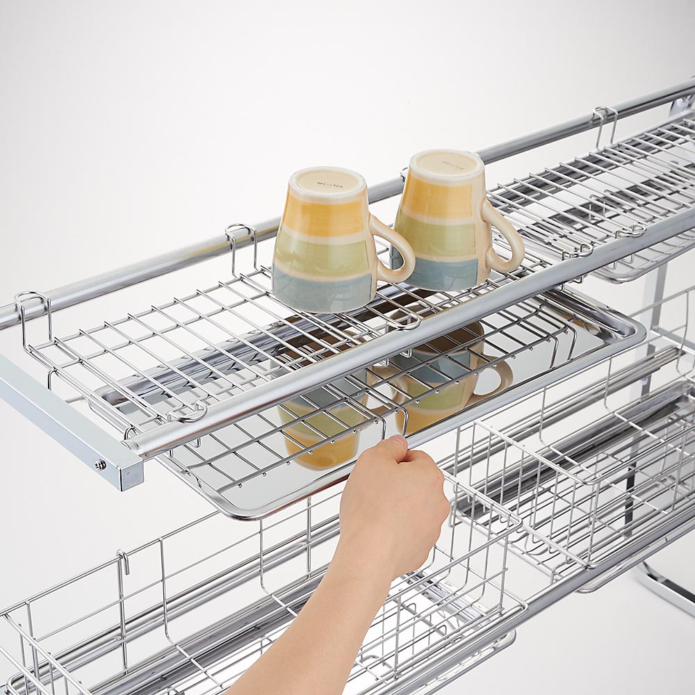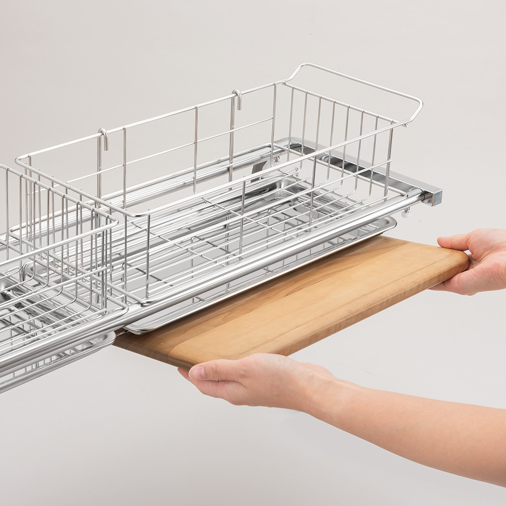 さらにこちらは2段タイプなので収納量は2倍!上段で食器などの水切りをするのはもちろん、よく使うザルやボウルなどの定位置として使っても便利です。