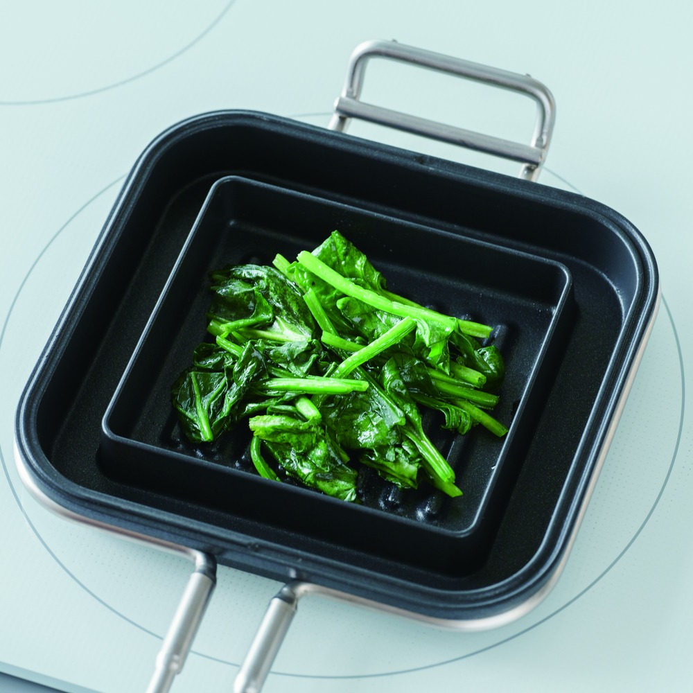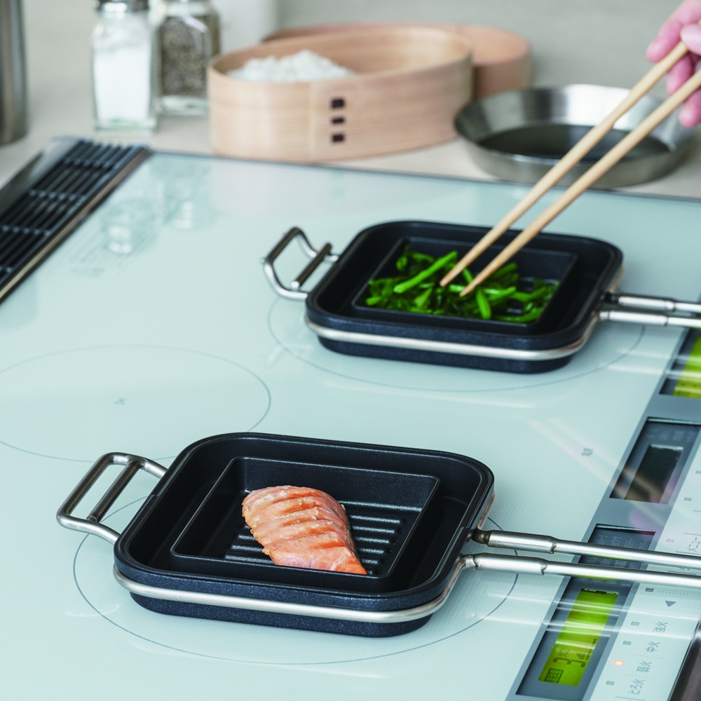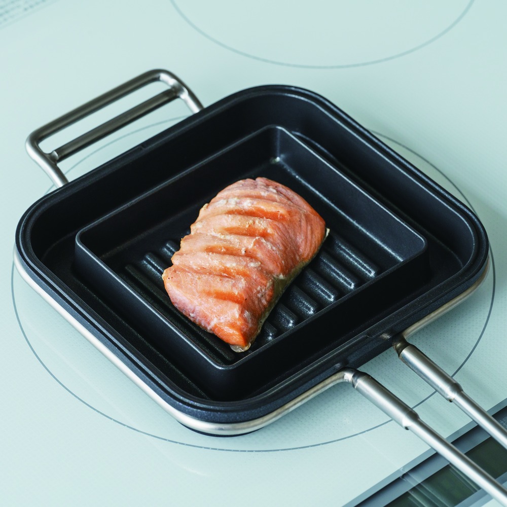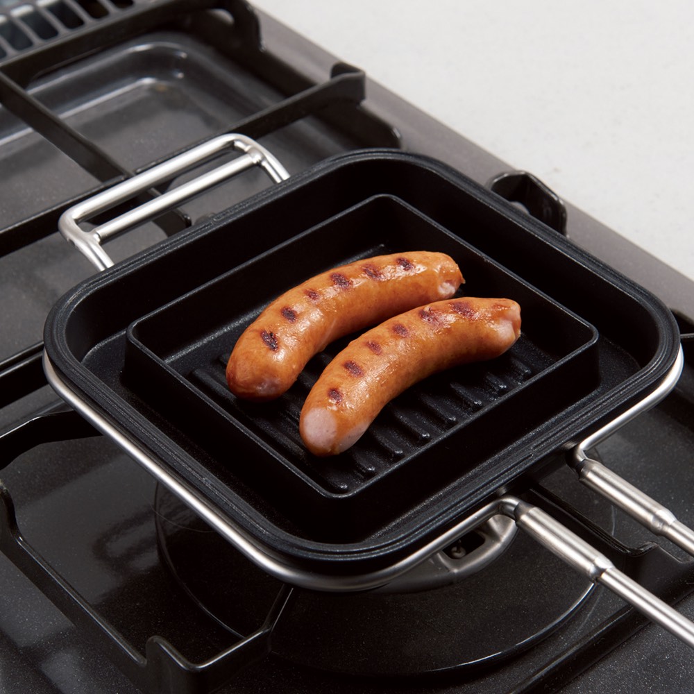 2つに分かれるので小さなグリルパンとしても使えます。しっかり焦げ目もつくのでお弁当のソーセージや野菜など美味しそうに焼きあがります。