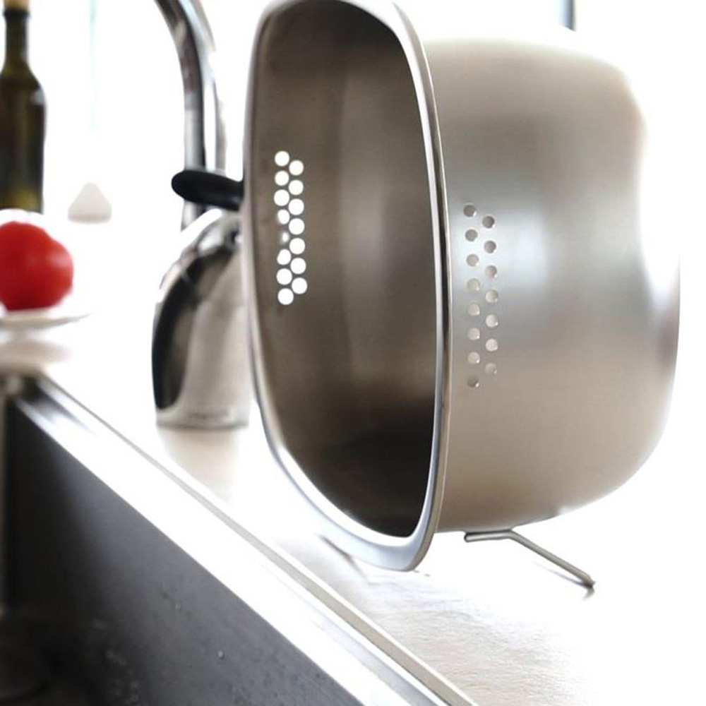 完全に自立する、立つ洗い桶。水が溜まりにくく衛生的。