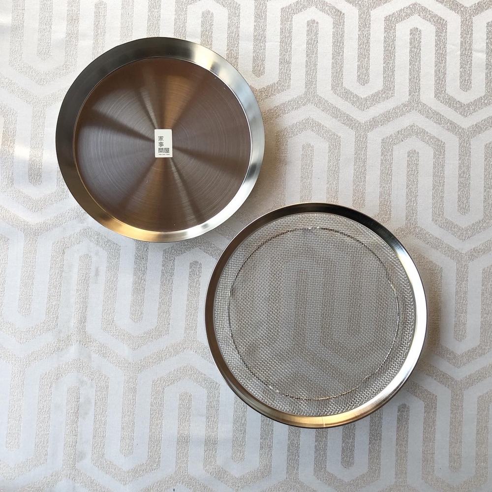 • お届けするのはまる型トレー1枚と盆ザル1枚です