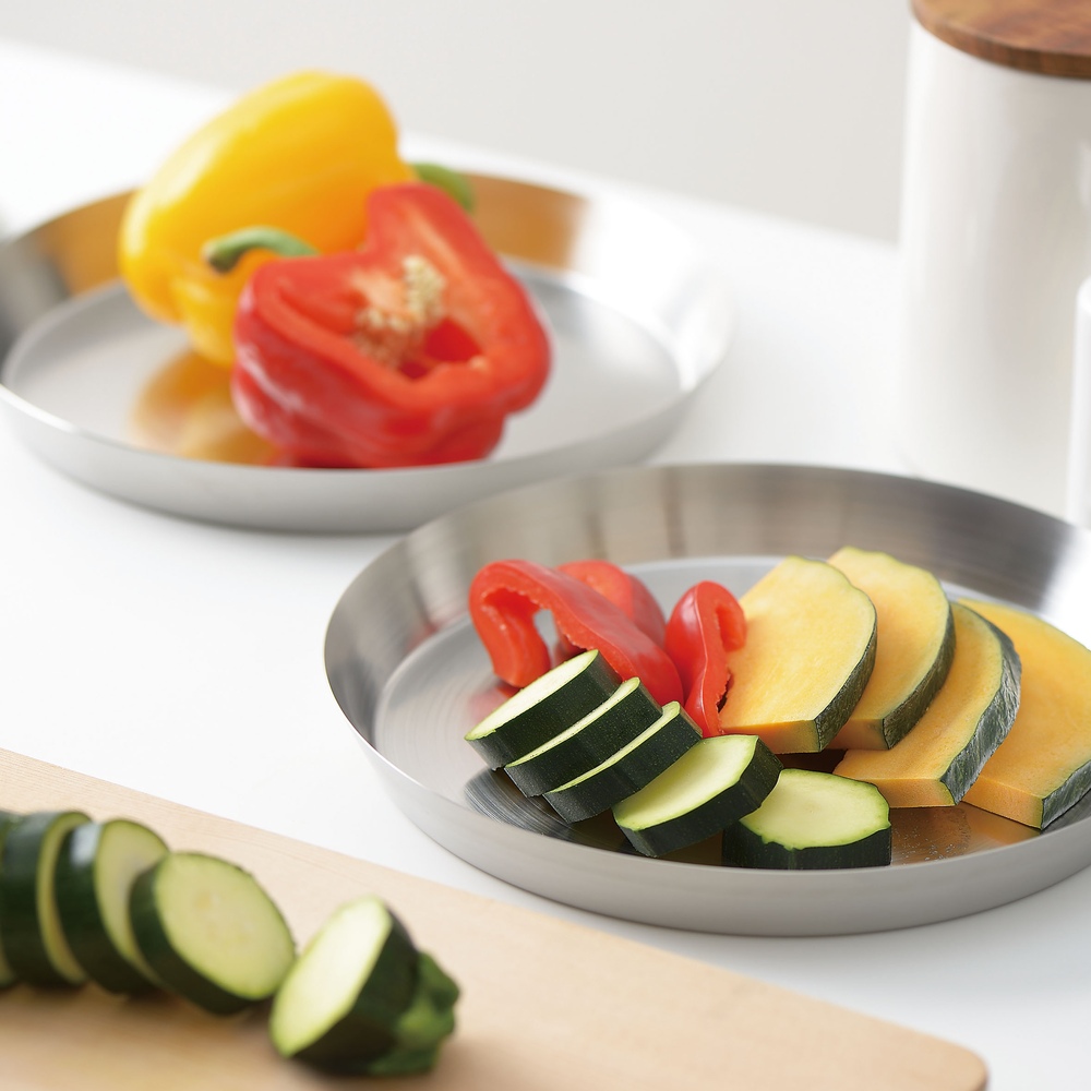 ■サイズ(約)/トレー:幅21×奥行21×高さ2.4cm、底径18.5×深さ2.3cm、ザル:外径22.5×高さ2.8(深さ2)cm、重量(約)/トレー:200g、ザル:150g