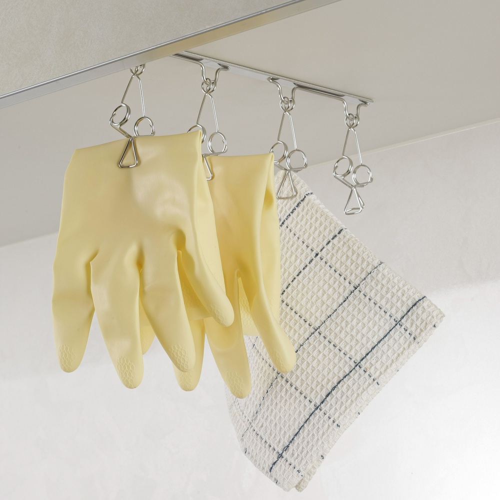 ●ふきんやゴム手袋などを挟んで乾かせます。