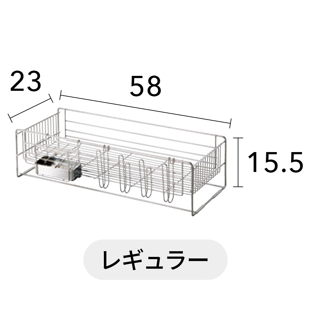 (レギュラー)は設置幅23cm。日本のキッチンに多い奥行58cmだから最大限に縦のスペースを使えます。