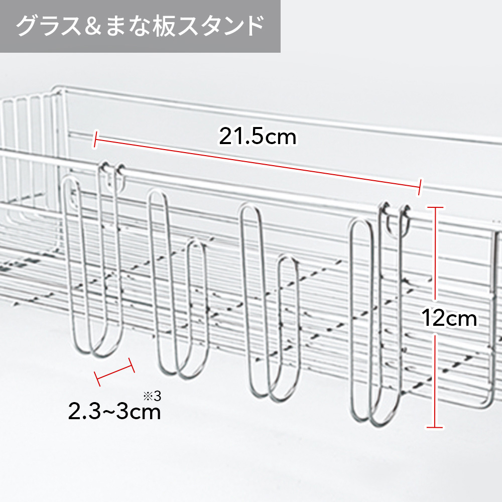 ■箸立て、グラス&まな板スタンド(厚さ2.5cmまでのまな板に対応)付き