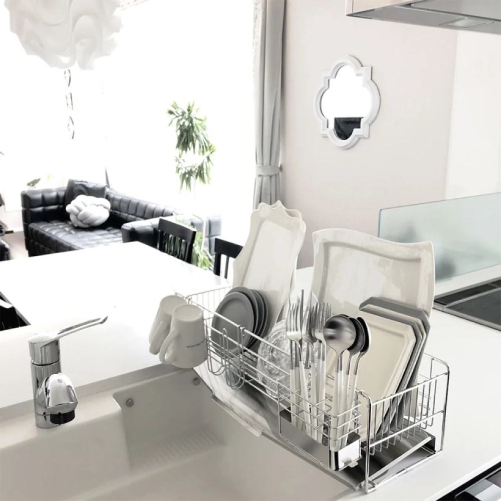 シンクに渡せるから幅18cmの狭いスペースが大容量に。50000台突破!dinosロングセラー水切り