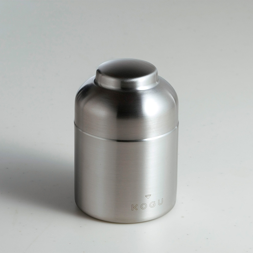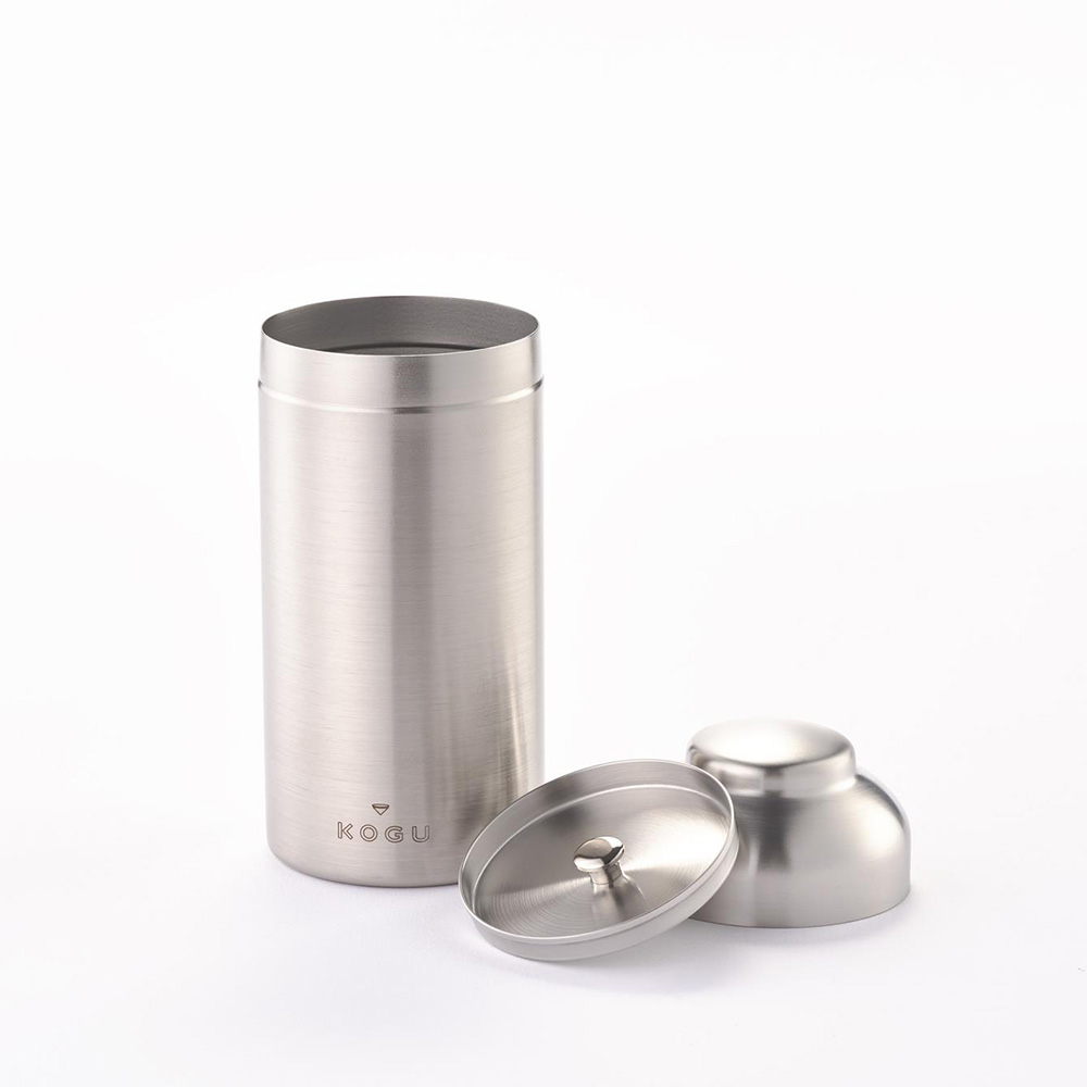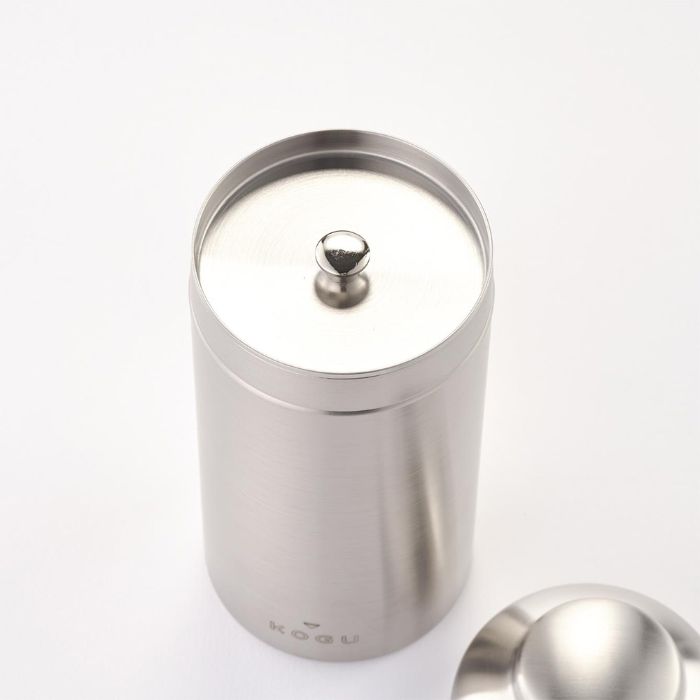 コーヒー豆は炒った後から劣化が始まります。珈琲考具のキャニスターは、光や空気からコーヒー豆を守り、風味を長持ちさせるために設計されています。茶筒の構造を採用し、内と外の2重フタでしっかりと密閉。大切な豆の鮮度と香りを保ちながら保管することができます。燕三条の精巧な技術が生み出した、スッと心地よく閉まるフタの使い心地をぜひ体験してください。