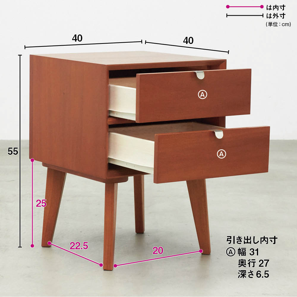 ■サイズ:幅40奥行40高さ55cm、引き出し奥行27cm