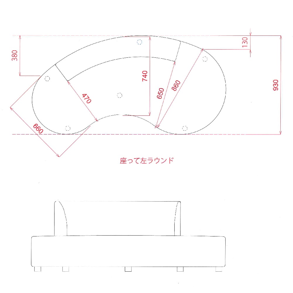 サイズ詳細(図面は座って左ラウンドタイプです)