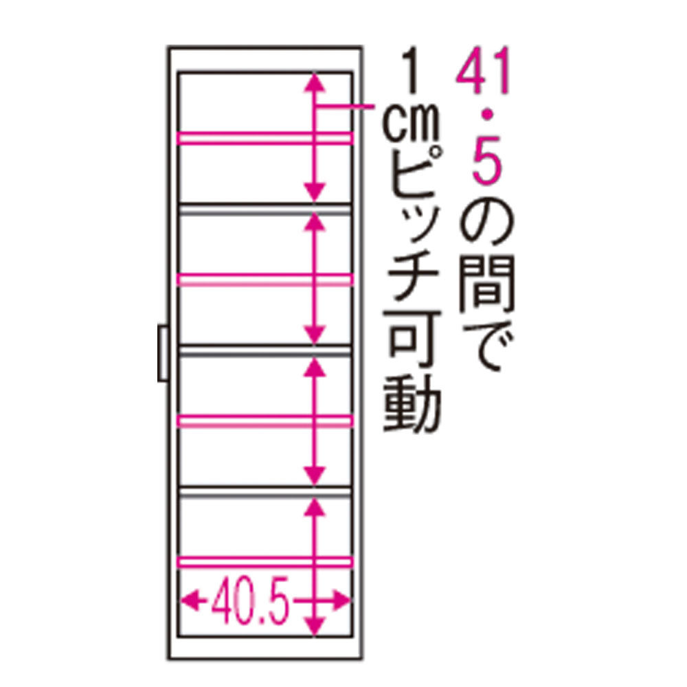 収納物に合わせて、可動棚板は1cmピッチで調節可能。