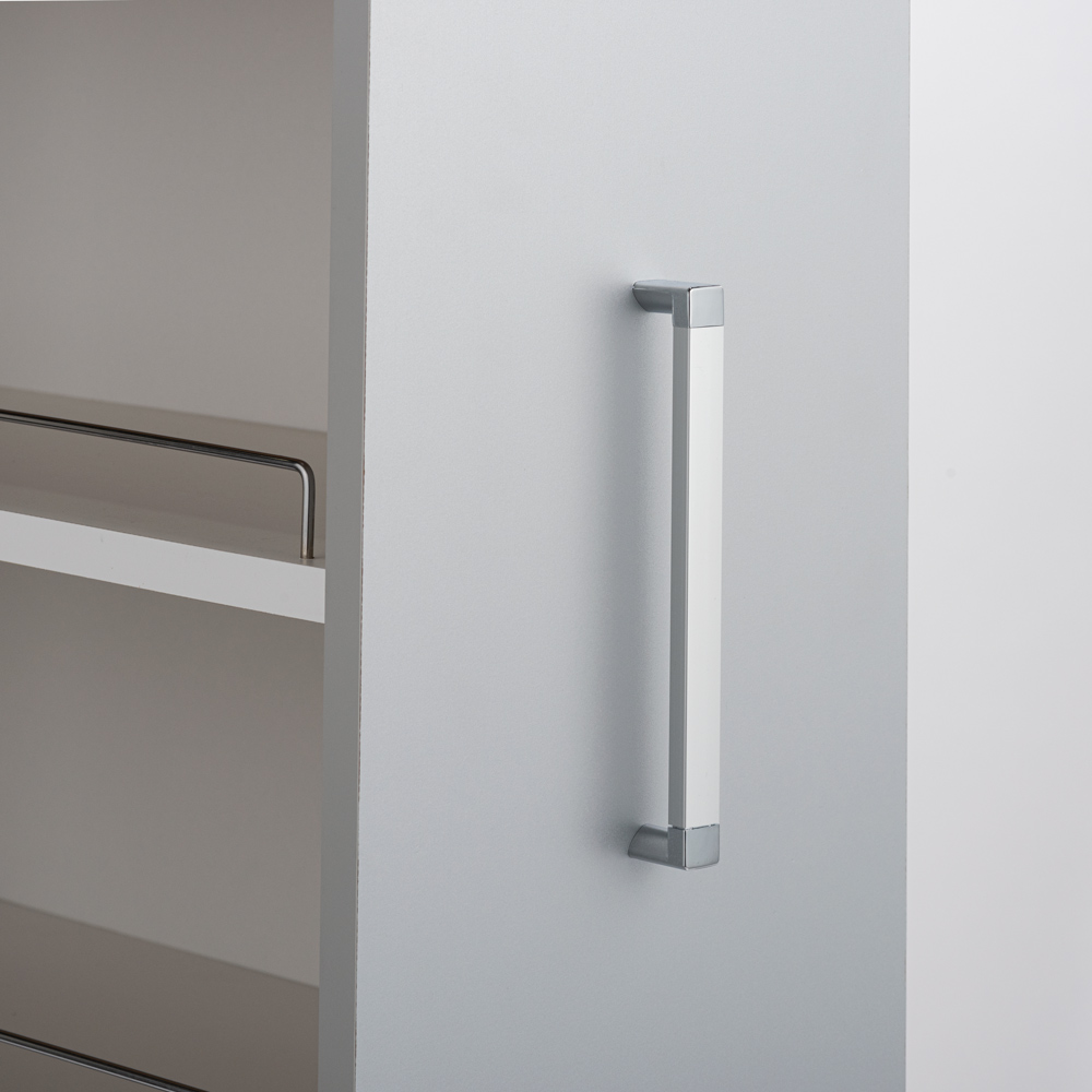 ◆前板はスッキリした印象のホワイト色、冷蔵庫の色に合わせたシルバー色を組立時に設定することができます。
