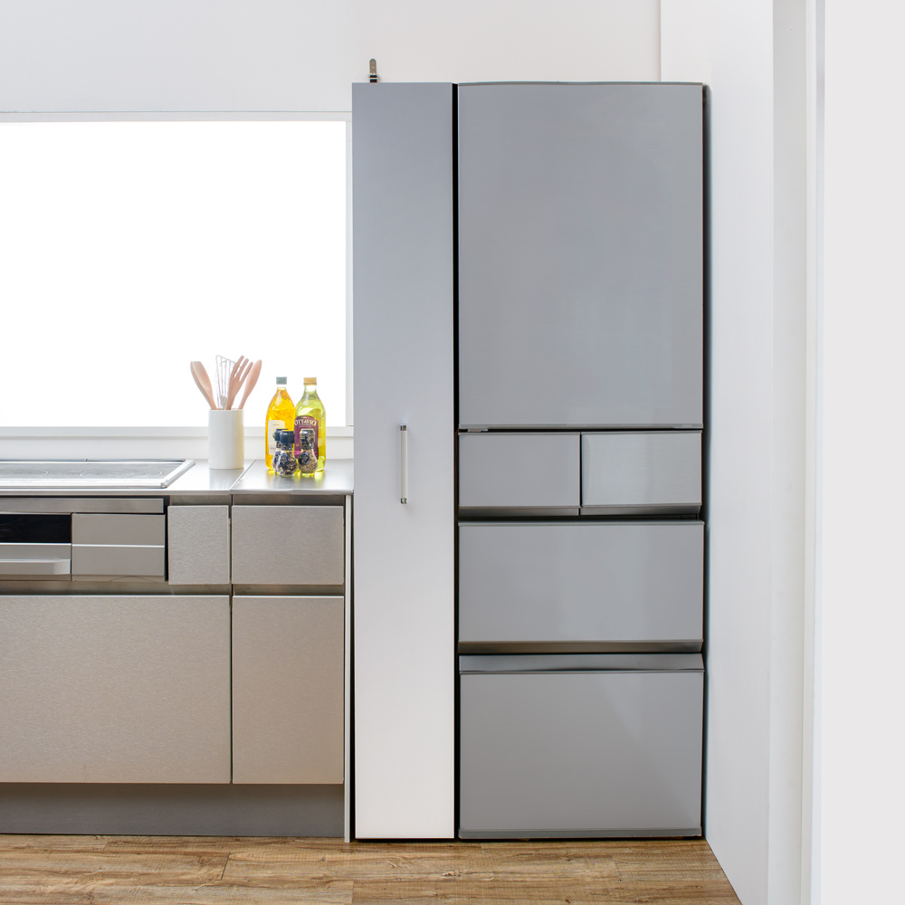 冷蔵庫がステンレス扉なので、グレーの扉がピッタリで、高さも同じなので、とてもすっきりしました。収納力も高くて満足です。