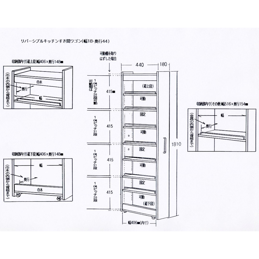 [幅18奥行45cm] リバーシブルキッチンすき間収納ワゴン 日本製 キッチンストッカー 隙間収納 キッチン収納 630034