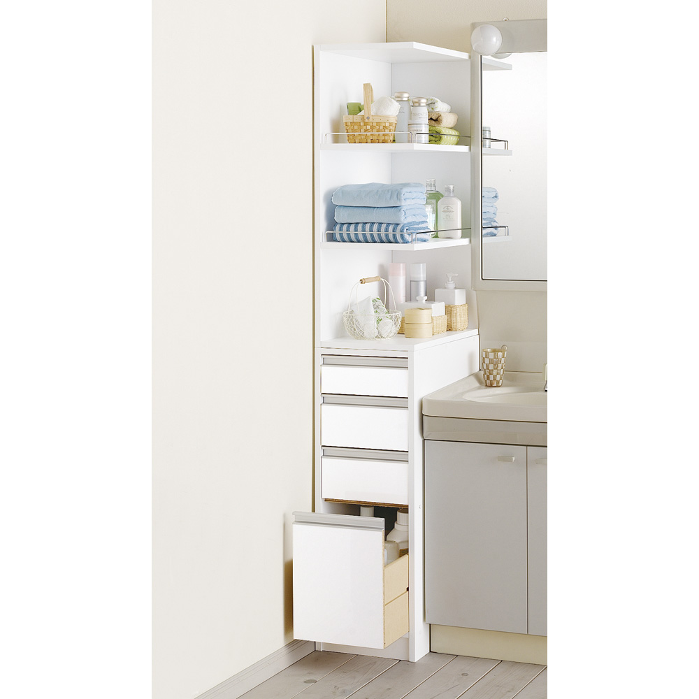 ●引き出しには洗剤やドライヤーなど洗面所の収納が入ります。●収納場所に困るタオル収納にもおすすめです。
