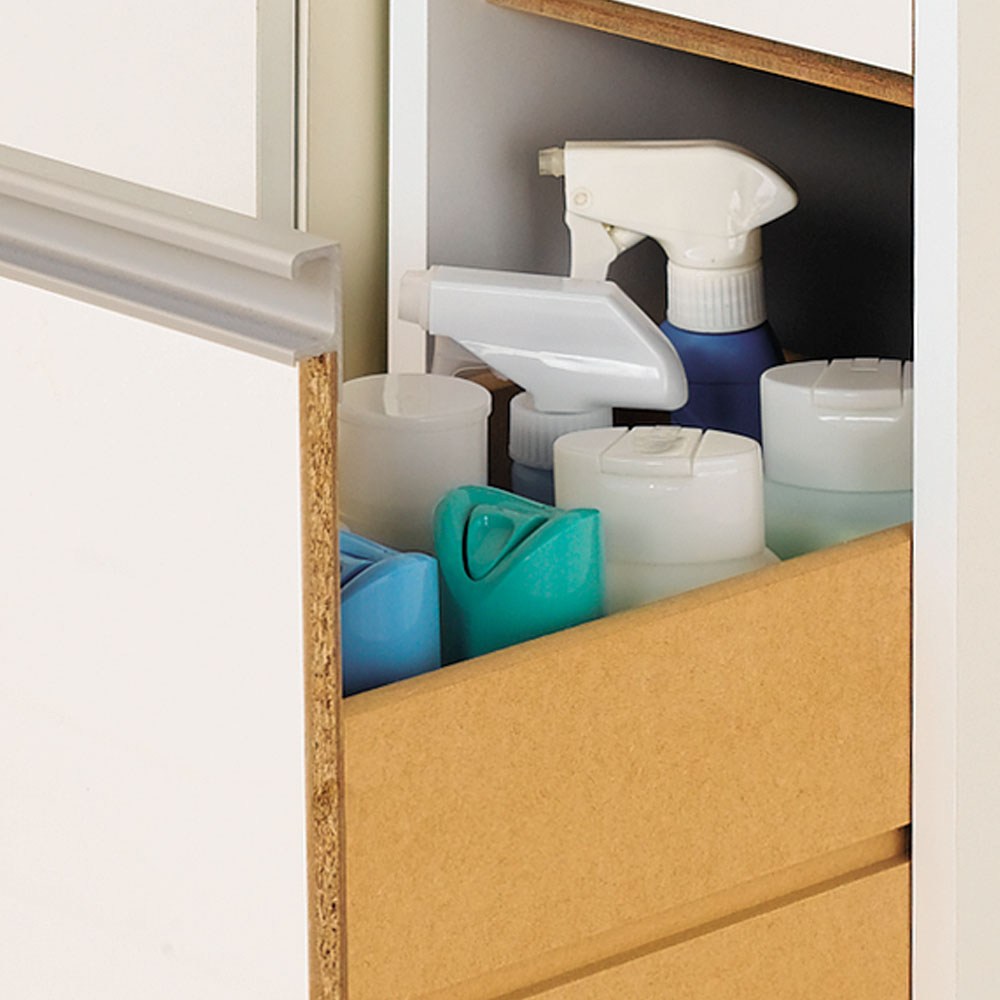 ●洗剤や柔軟剤のストックに。タオル収納にも便利です。●引き出しの最下段は背の高いボトル類も収納できる深さがあります。