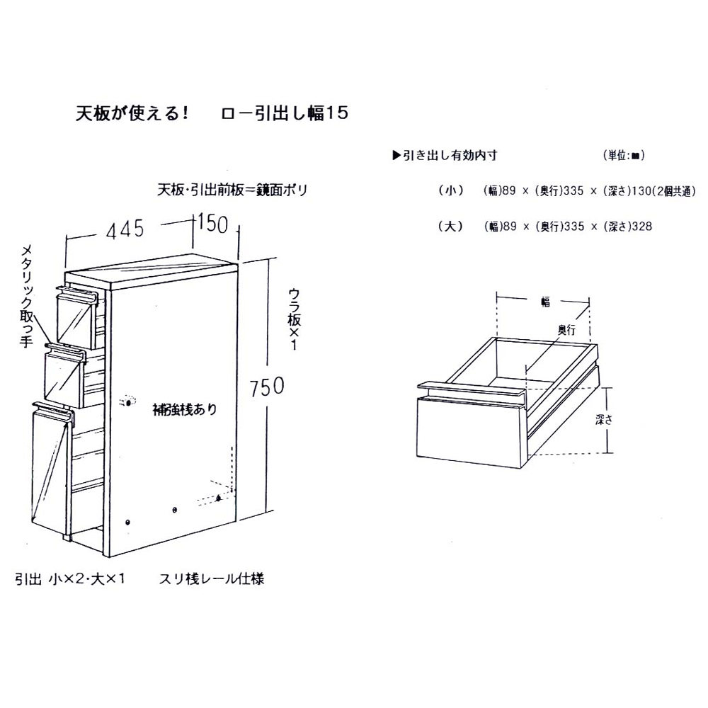 ■幅15奥行44.5高さ75引き出し奥行33.5cm・重量約16kg